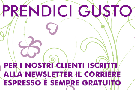Per i nostri clienti iscritti alla newsletter il corriere espresso standard (valore 5 €) è sempre gratis.