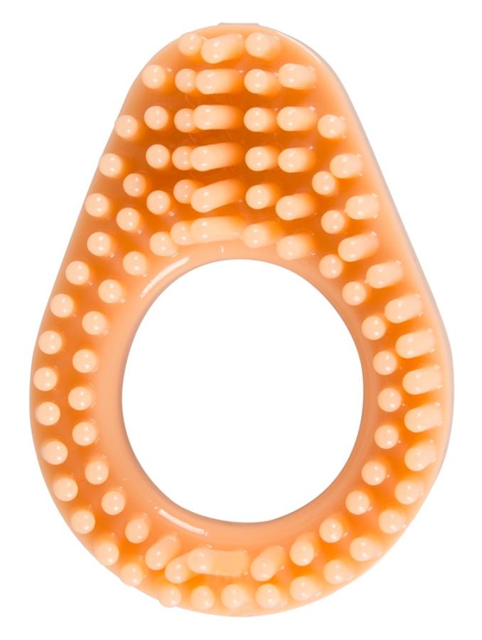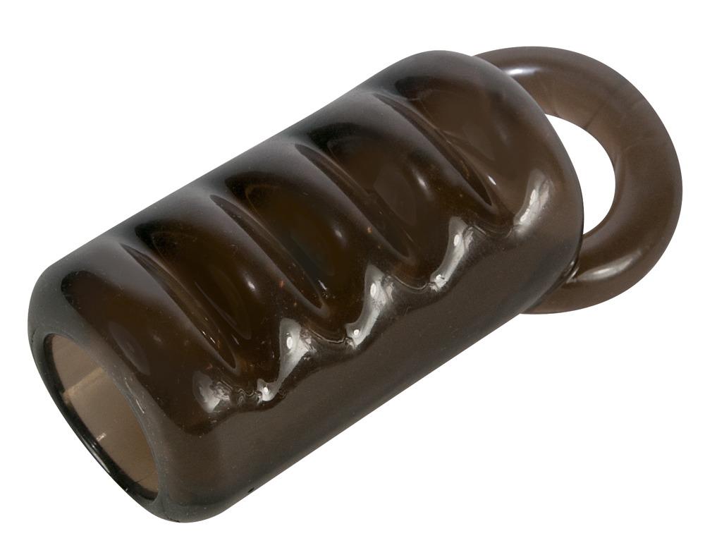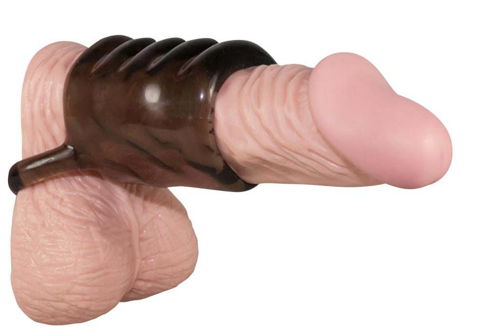 Copri-pene per un maggiore divertimento a due!Manicotto, aperto su entrambi i lati, con struttura ad onda di stimolazione sulla parte superiore e anello testicolare. Trasparente/fumo. Lunghezza totale 6,5 cm. Ø interno e anello Ø 2,3 cm. In lunghezza e Ø molto elastico. Materiale: TPE.
