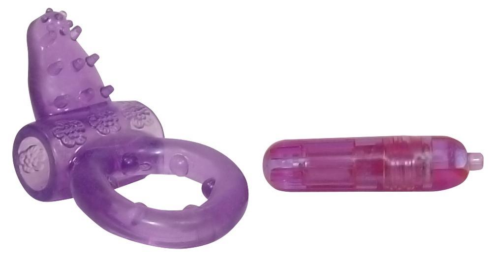 Tra l’anello per pene a rilievi (Ø ca. 2,5 cm, espandibile) e lo stimolatore del clitoride a rilievi si trova un mini-vibratore! Color viola. Materiale: TPE, ABS. Incluse batterie.