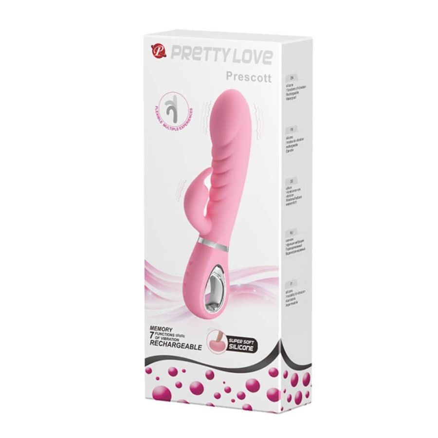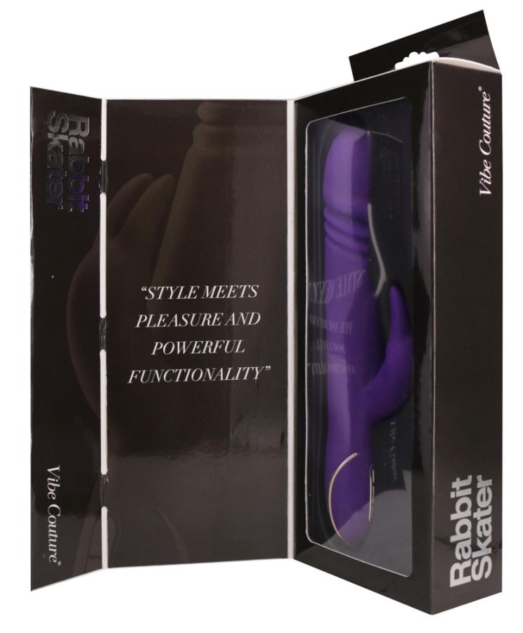 Rechargeable, waterproof purple vibrator with decorative silver-coloured parts. Round G-spot tip with stimulating grooves underneath and integrated thrust and vibration functions in 3 speeds and intensities. Rabbit-shaped clitoris stimulator with nose and movable ears, with 7 vibration patterns. It feels extremely realistic because of the silicone. Rechargeable using the included USB cable (charging time 2.5 hours).Complete length 23 cm, insertion depth 13 cm, Ø 3.7 cm. Clitoris stimulator 7 x 2.4 cm. Material: silicone, ABS, phthalate-free according to EU Regulation REACH.