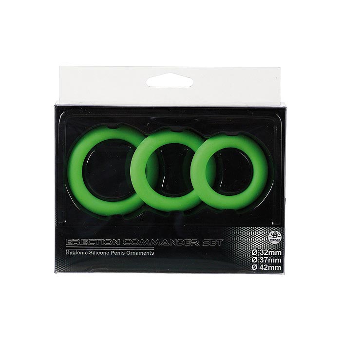 Stretchable silicone cockrings.One beveled edge cockring.One twin loop cockring.For harder and firmer erections.