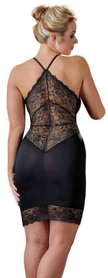 Beautiful decoration at the back!It is a high-neck dress that is sexy and simple at the front. The slightly transparent dress looks very beautiful and not just because of its hem. It also has delicate floral lace, which covers the entire back right down to the buttocks. The black dress clings to your feminine curves, thanks its stretchy material. You will definitely be a sight for sore eyes in this breathtaking strapless dress!Main material: 85% polyamide, 15% elastane; lace 90% polyamide, 10% elastane.