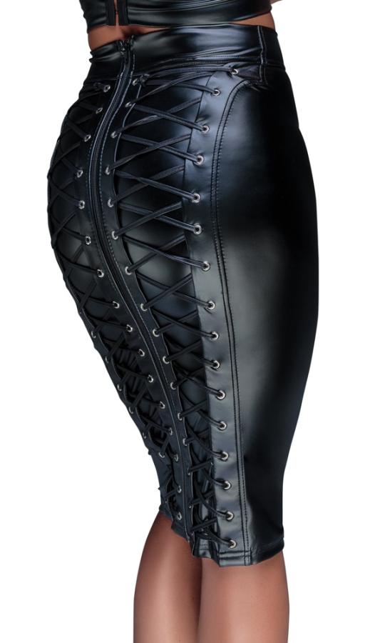 This skirt can be worn with absolutely anything! This knee-length skirt is fitted at the waist and is wonderfully enchanting, thanks to its simple but beautiful front and the exciting decoration at the back. The 2-way zip at the back and the fancy lacing at either side of it will give you a mesmerising backside! Black. 80% polyamide, 20% elastane.