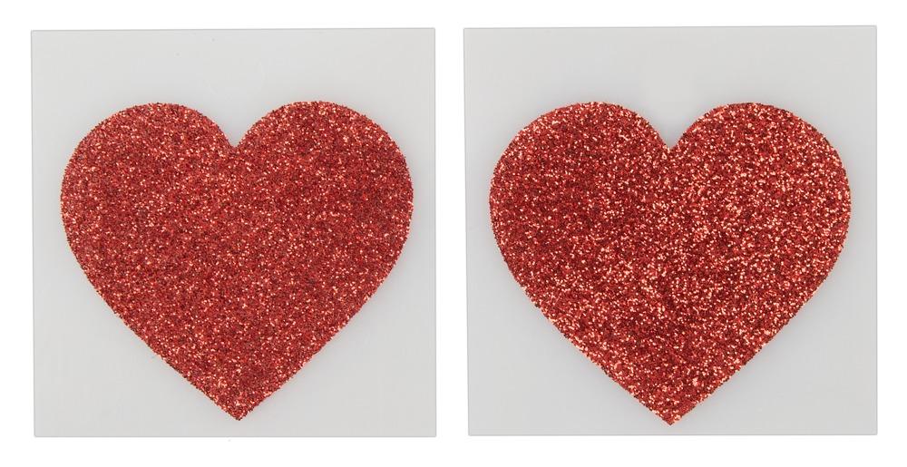 I gioielli per i capezzoli per il vostro spettacolo privato di burlesque o strip dance!Scintillanti cuori di capezzoli rossi da attaccare. Sul retro con strisce adesive. Dimensioni: 5,2 x 4,9 cm. Carta, PET, adesivo acrilico per la pelle. 1 coppia.