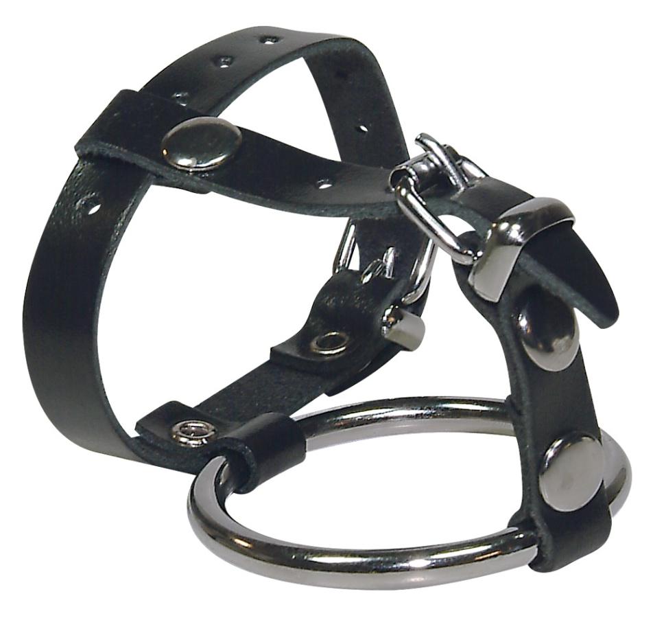 Cinghia regolabile con chiusura a fibbia. Ring-Ø 4,5 cm. Nero/argento. Materiale: pelle crosta, metallo.