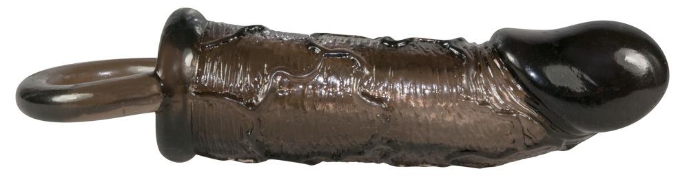 Allungatelo di 3 cm!Guaina trasparente per pene fumé con anello flessibile per testicoli, forti venature e glande saldamente imbottito, che estende il pene di 3 cm. Lunghezza totale ca. 13 cm, profondità di inserimento ca. 10 cm. Ø guaina ca. 1,9 cm (estensibile). Ø anello testicolo ca. 2,9 cm. Materiale: TPE.