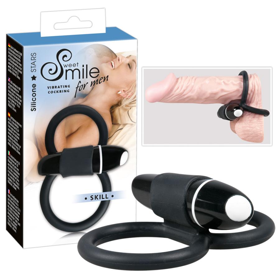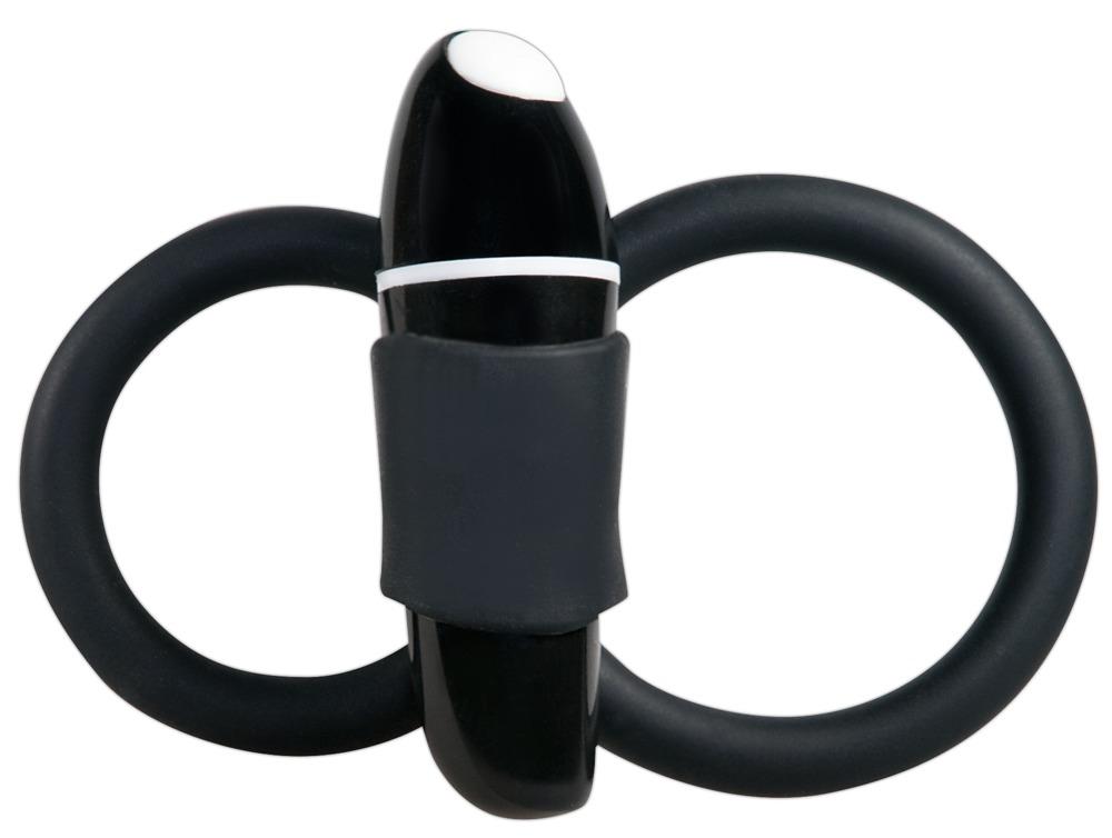 It isn´t just the penis that is the centre of attention in this ring but also the testicles, which are erotically encircled. The penis/testicle ring is made of two flexible rings (Ø 4 and 4.5 cm): the penis is pushed though one of the rings and the other ring is pulled over the testicles so that they are slightly lifted. The rings are joined together by a loop that sits between the bottom of the penis and the start of the testicles. A mini vibrator can be placed in this loop. The rings create a blood congestion effect making the erection harder and last longer and the toy´s tight fit and slight pressure on his crown jewels provide tremendous stimulation. The stimulation is increased again when the vibrations of the mini vibrator are turned on. These vibrations make the erections even harder and even longer lasting. However, it isn´t just the wearer that is pleasured but also the partner. The partner will enjoy firm thrusts in combination with penetrating vibrations for however long the man wants because wearing the toy also increases his stamina. The toy is made of soft, skin-friendly silicone and that is why it is perfect for being between two sweating bodys, as it doesn´t disrupt sex. Thanks to the double stimulation, sex is more intensive and the climax can be prolonged for HIM and HER.The 7.5 cm long vibro-bullet is removable and can be used separately so that the 7 vibration rhythms can also be felt on other sensitive parts of the body e.g. nipples, glans or clitoris. There are 7 tingling vibration rhythms to choose from – from delicate vibrations to pulsating rhythms.Ø of the flexible rings: 4 and 4.5 cm. Material: silicone. Includes batteries.
