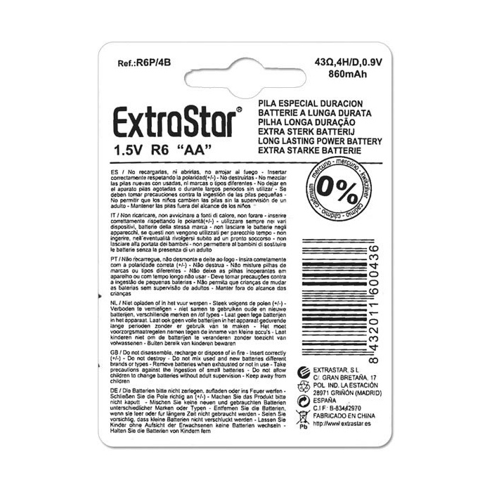 Joy - batterie 1.5v aa size 4 pezzi extrastar