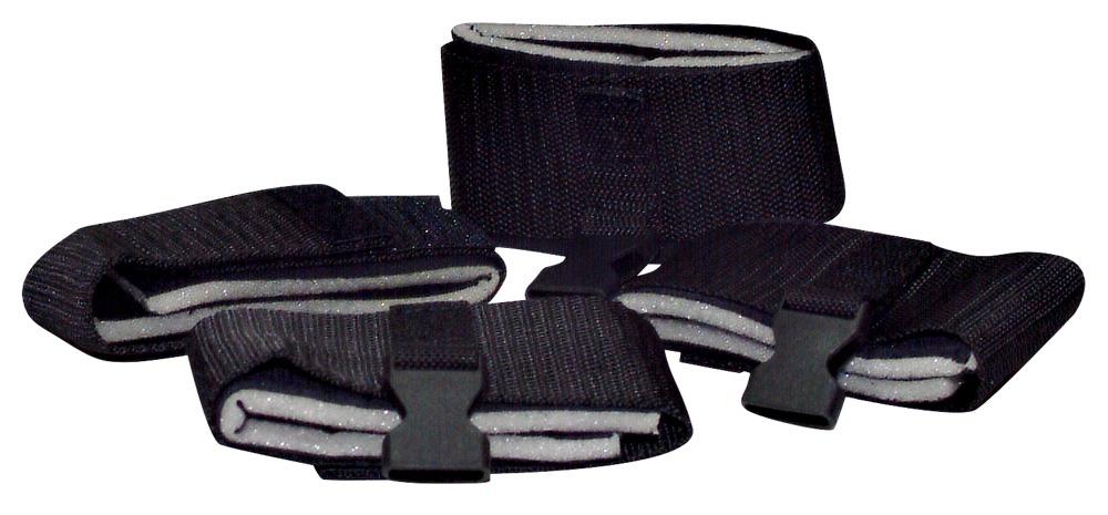 Costruzione a nastri per il posizionamento sotto il materasso. Due nastri trasversali (rispettivamente lunghi 320 cm) vengono collegati con il nastro longitudinale lungo 180 cm e poi si agganciano i quattro manicotti imbottiti con chiusura a velcro median