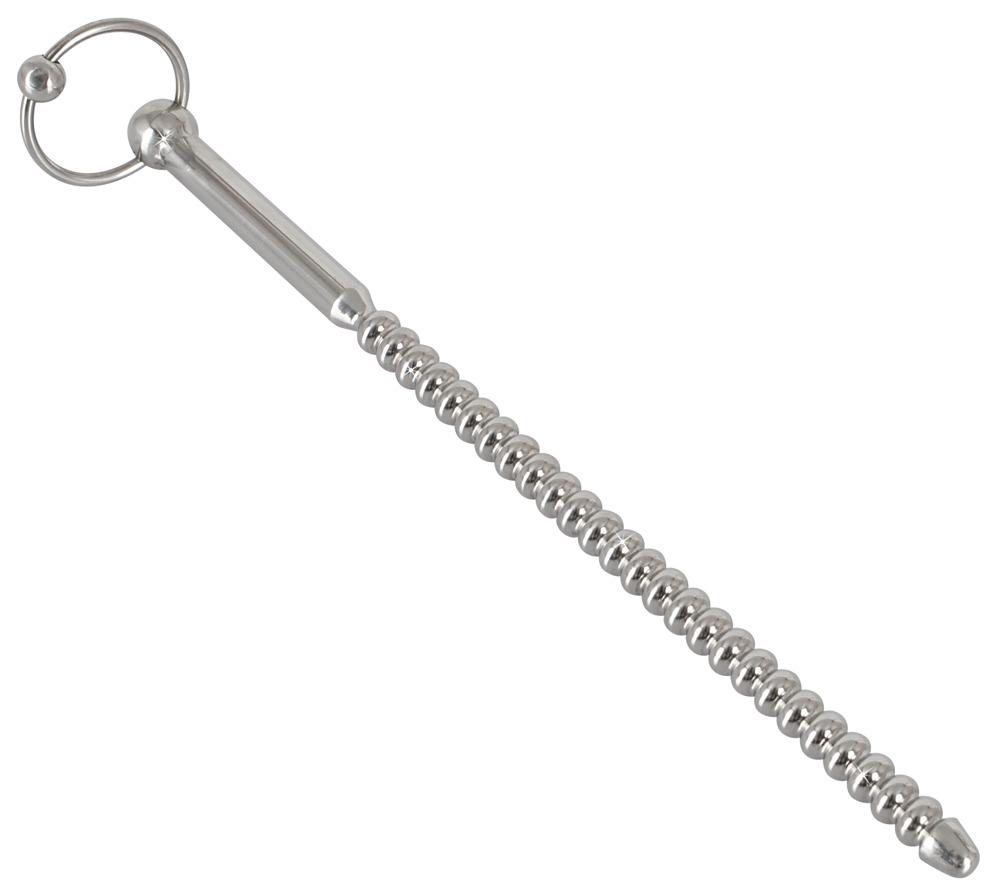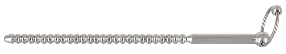 Stimolazione uretrale penetrante!Dilatatore in alluminio scanalato (senza apertura) con anello di ritorno. Lunghezza totale 27,7 cm di lunghezza, Ø max. 1 cm.