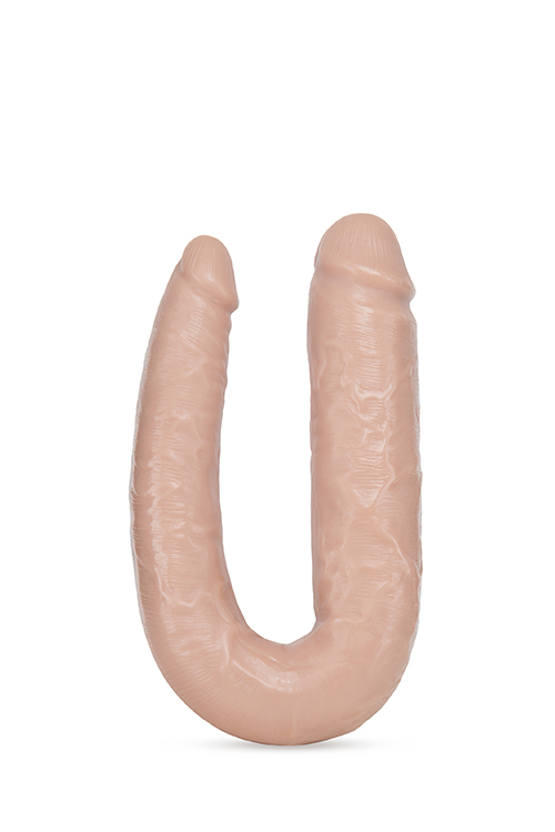 Ideal for double pentration. This soft U-shaped toy flexes and curves. Extra long handle for solo play. Features 2 distinct ends: 1,25 inches width on the narrow side and a thick 1.75 inches on the wider side. Realistic detail. Perfect for G-spot play. The Dr. Skin Dr. Double Dildo is loaded with creative possibilities! This soft, U-shaped toy flexes and curves, making it ideal for double penetration or for comfortable use between partners. Or try its extra-long length as a handle during solo play. The Dr. Skin Dr. Double features 2 different-sized ends: thick on one size, and comfortable average girth on the other. Great for lovers who prefer different sized toys, or for the person who likes it big in front and average in back! Made of our lab-tested non-porous PVC, this toy is body safe, phthalate-free, and easy to clean.