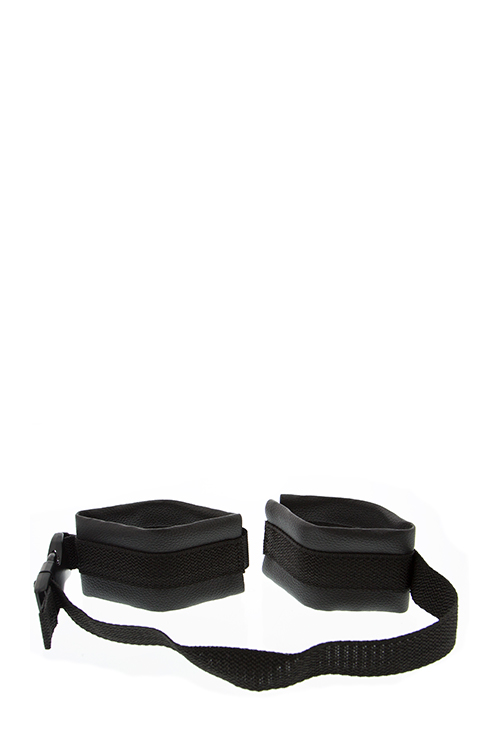 Leather look wrist restraints from the Guilty Pleasure BDSM collection.With Velcro closure and adjustable connection strap.Length up to 40 cm / 15.7 inch.Convenient side release buckle.