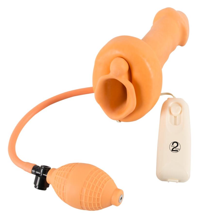 La vagina vibrante color pelle (Ø 4 cm) è gonfiabile in modo super-aderente! Godete le inimitabili penetrazioni con frizzante stimolazione vibrante. Le vibrazioni sono individualmente controllabili a regolazione da delicato a forte secondo le proprie esig