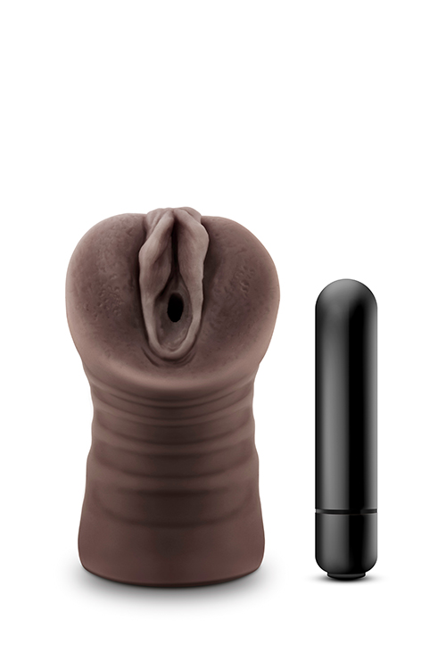 Soft and inviting pussy masturbator. One speed. Waterproof bullet vibrator heightens stimulation. Open ended to accomodate any length. Textured love tunnel. No slip grip. Includes vibrating bullet. Requires 1 x AAA, not included.