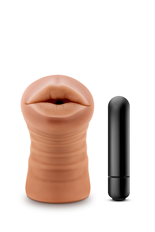 Soft and supple masturbator. 1 Speed push button bullet. Realistic feel. Textured love canal. Open-ended to accomodate any length. Waterproof. No slip grip. Requires 1x AAA battery, not included.
