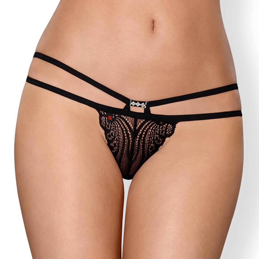 These cute and charming panties are made out of delicate floral-patterned lace in pretty pink. The back is almost completely open - the lingerie is only held together by four narrow straps that emphasise the bum in a really sexy way. A big bow at the back adds the perfect finishing touch to your erotic appearance. 94% polyamide, 6% polyester.
