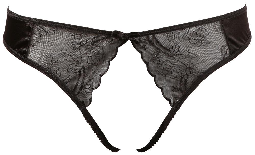 Extremely open-hearted! Tiny string that is invitingly open in the crotch area. With a large cut-out over the crotch. Made out of satin with delicate floral lace at the front.80% polyamide, 10% polyester, 10% elastane.