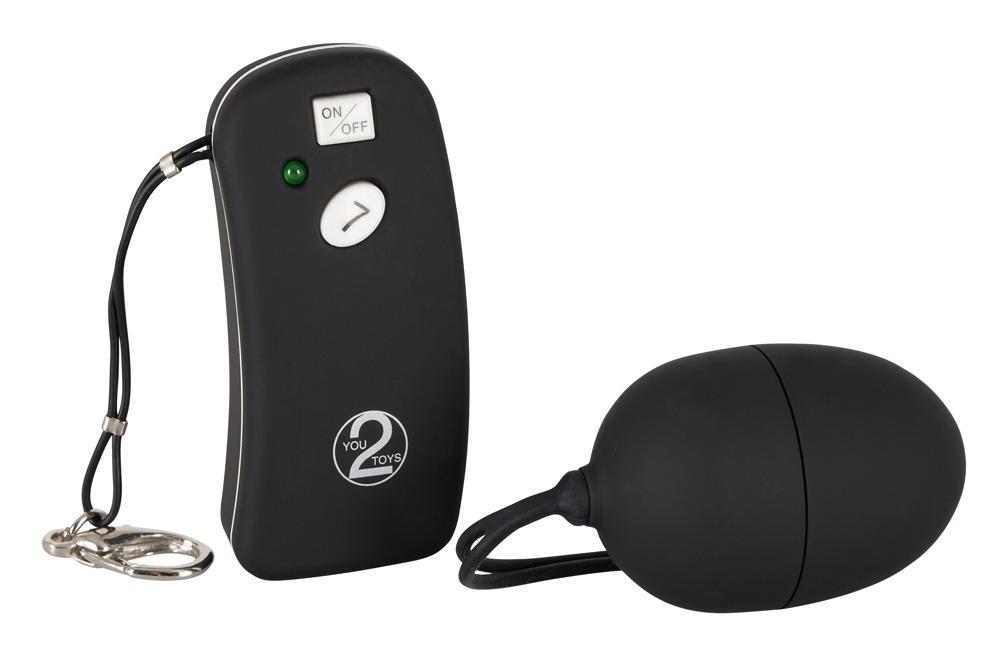 Uovo vibrante telecomandato, perché spesso avvengono cose inaspettate. Portata di diversi metri. Nero con 7 livelli di vibrazione. Ca. 5 cm di lunghezza, Ø 3,7 cm. Materiale: ABS. Incluse batterie.
