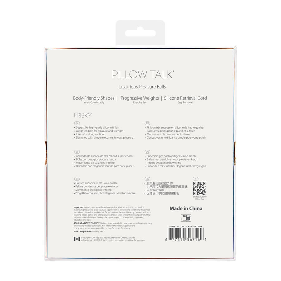Le palline di piacere Frisky sono perfettamente equilibrate sia per aumentare il tuo desiderio sia per rafforzare i tuoi muscoli. Queste sfere in ottimo silicone offrono un movimento oscillante stimolante seguendo i tuoi naturali movimenti e con la parte finale adornata da un bellissimo cristallo Swarovski®. Questo è un sexy segreto che adorerai mantenere.