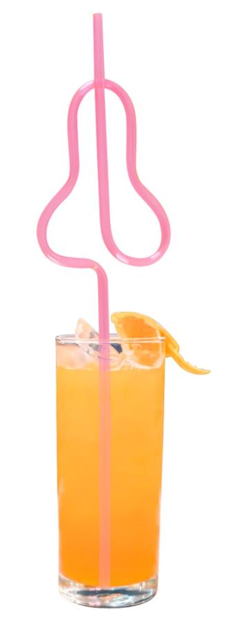 A cheeky party gift! Perfect for soft drinks, long drinks and cocktails.4 reusable penis shaped straws. Pink. PVC.