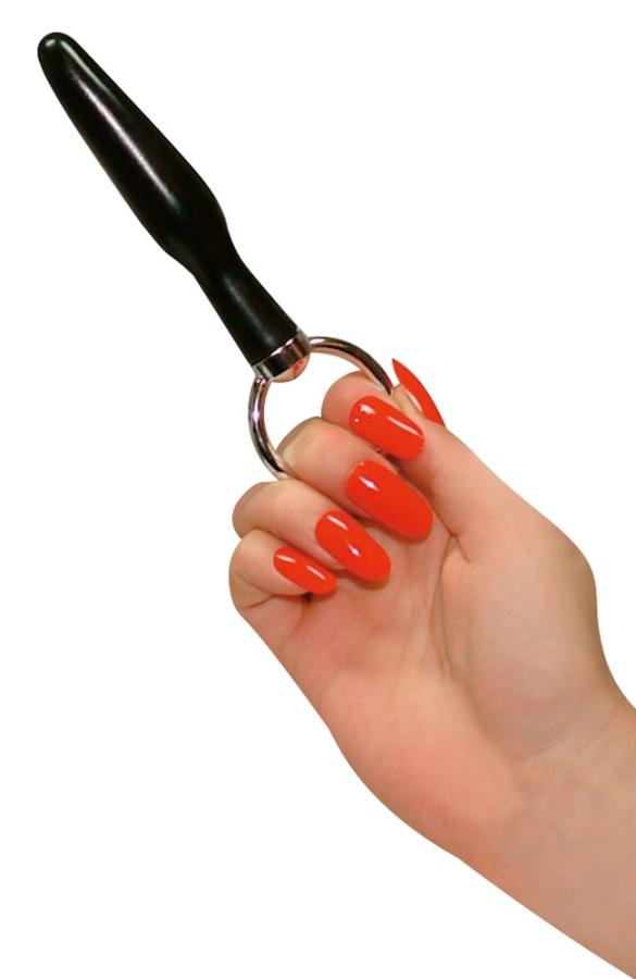Plug flessibile con anello color argento. Ca. 10,5 cm di lunghezza, Ø 1-2 cm. Nero. Materiale: PVC, ABS.