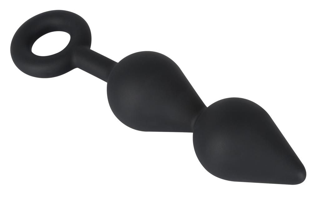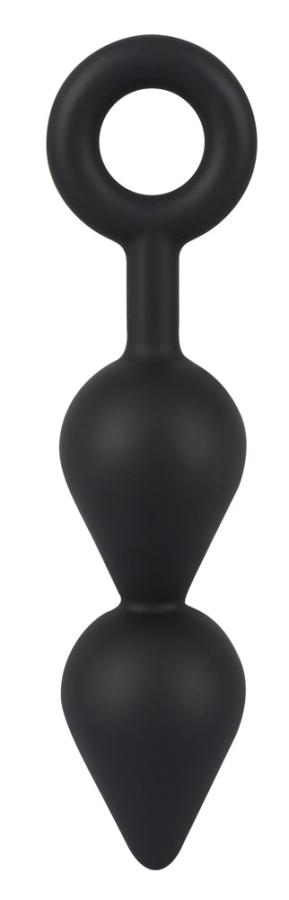 An exciting plug for intense stimulation! This flexible butt plug has a velvety soft touch surface and feels wonderful when it is being inserted into your pleasure zone. Feel the tip of the first droplet gently pushing its way through so that its large body and narrow neck can follow. Once the first droplet is inside, the second one can then follow. The retraction ring makes sure that the plug stays in place and makes removal extremely easy as well. Black Complete length 19.8 cm, insertion depth 12.5 cm, Ø 4.5 cm. Silicone with a PU coating.