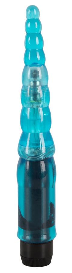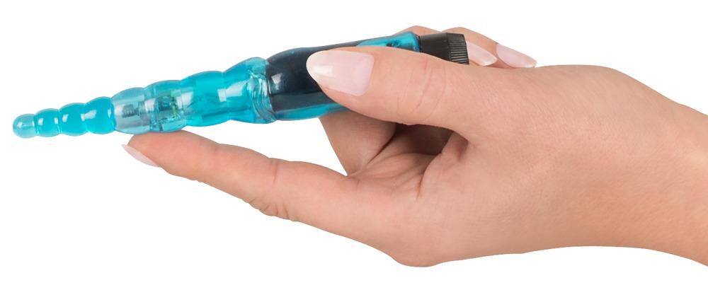 Nel design scanalato con punta affusolata. Vibrazione a regolazione continua. Ca. 13,5 cm di lunghezza, Ø 0,7-2,1 cm. Blu. Materiale: PVC.