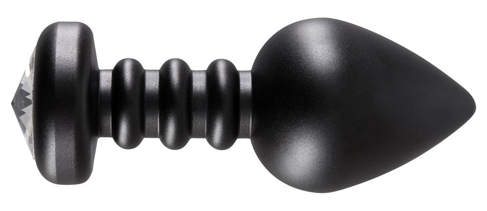 Glamour, babe!Black, conic-shaped anal plug made of cool aluminium and a clear gem stone at the end. Total length: approx. 10 cm, penetration depth: 8.2 cm, ø: 1.5 to 3.8 cm. Weight: 133 g.