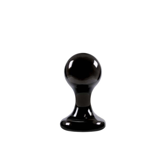 Plug anale nero trasparente con piede a ventosa largo. 13 cm di lunghezza, Ø 2-7,5 cm. Materiale: PVC.