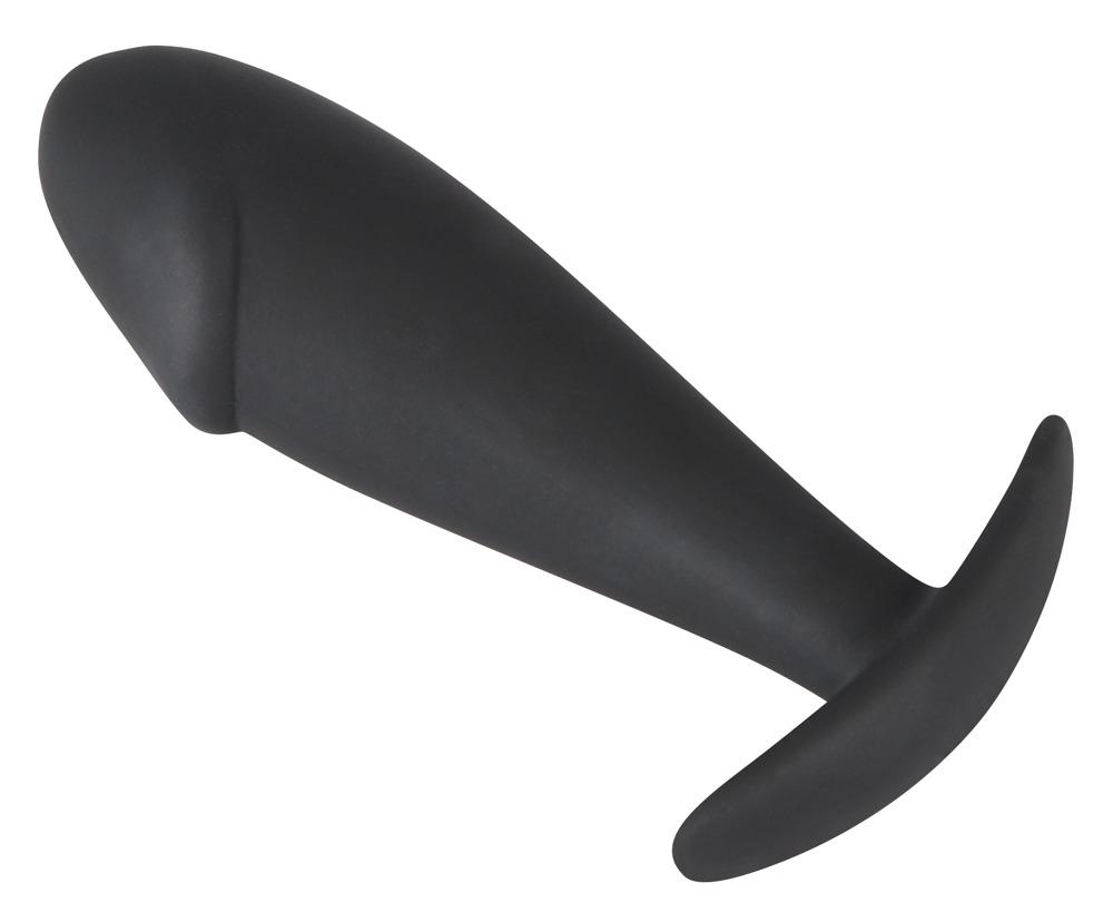 Piacere anale!Il tappo anale nero ha un glande indicato in punta ed è rastremato verso il tappo. Lunghezza totale 10 cm, Ø 1,3-3 cm. Silicone con rivestimento in PU.