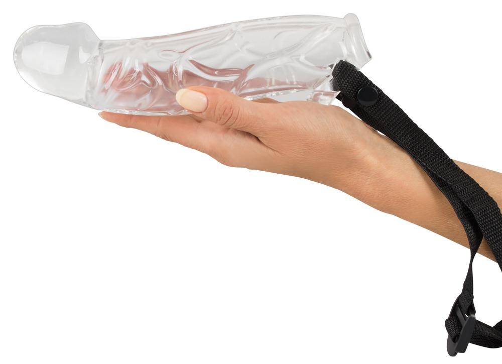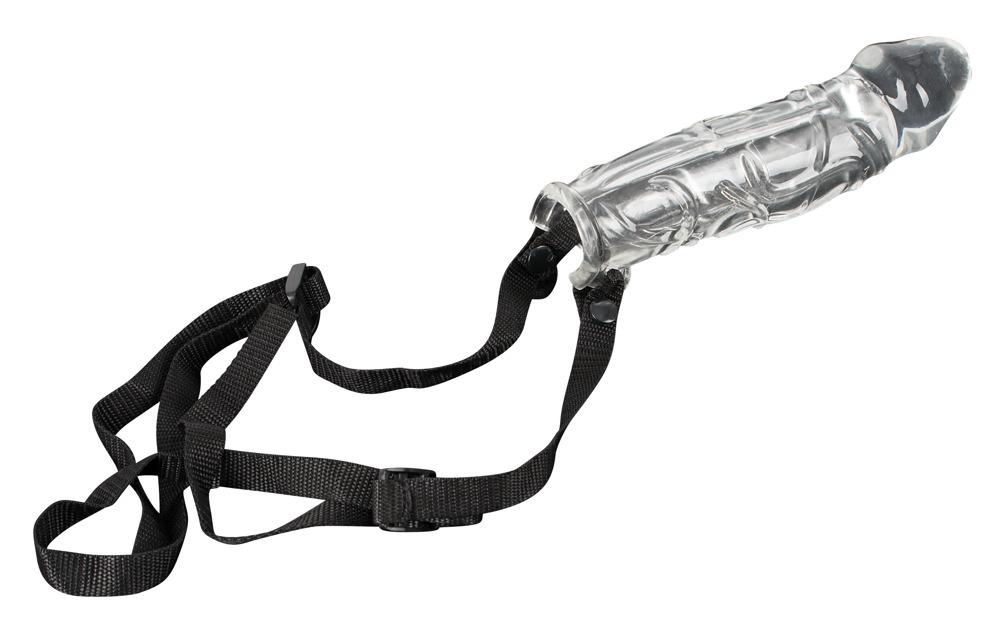 Desiderate un pene più lungo?Con questa guaina elastica trasparente per il pene con venature pronunciate si fa la scelta giusta, perché la punta ferma si estende di 5 cm.Basta far scivolare il coperchio interno liscio (Ø 3,1 cm) sul pene eretto e sperimentare momenti di piacere completamente nuovi durante il sesso!Il coperchio è fissato ad una cintura nera regolabile per un piacere sicuro durante il rapporto sessuale...Lunghezza totale 21,4 cm, profondità di inserimento 13,6 cm. Ø manicotto 4,6-5,2 cm. Materiale: TPE.Suggerimento: utilizzare un lubrificante per facilitare lo scivolamento.