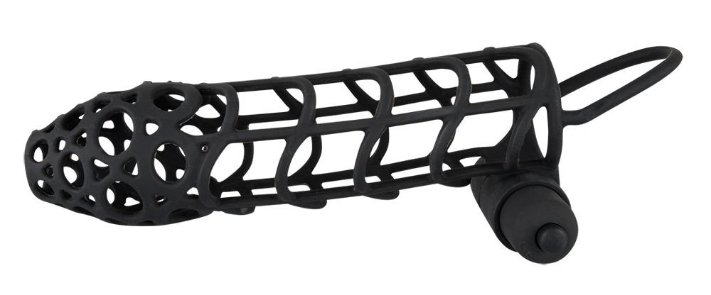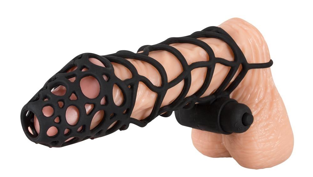 For magnificent erections!Make your best asset the centre of attention with this black, velvety soft penis sleeve with a fascinating lattice pattern and testicle ring. The mini vibrator, that can be integrated, with 10 vibration levels at the touch of a button provides an extra kick. Complete length approx. 14 cm, Ø testicle ring 3.6 cm (flexible), Ø sleeve 3 cm (flexible). Material: silicone: ABS.