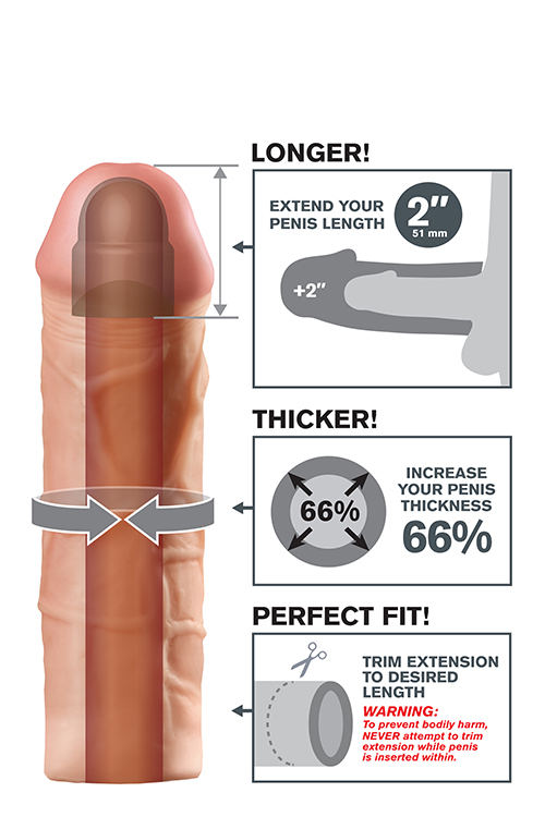 Developed as a safe, affordable, non-surgical alternative to expensive medical procedures and pills, your Fantasy X-tension will give you the biggest, thickest, most satisfying pleasure penis. It will give a 2? (51mm) Extension and adds 66% more girth. It is made of Ultra Lifelike Fanta Flesh. You can trim it for a perfect fit and it is phthalate free. It includes free lube and toy cleaner.