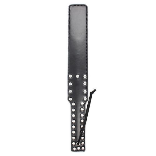 Spank Paddle di Fetish Art è una paletta utilizzata per regalare delle sonore ed efficaci sculacciate, conosciute anche come spanking. Realizzata in ecopelle con delle borchie lungo il manico che le conferiscono un aspetto duro e fetish allo stesso tempo, è un oggetto trasgressivo e deciso. Perfetta per i giochi di ruolo, infatti colui che sculaccia diveterà il dominarore che oltre a divertirsi dovrà prendersi cura della sottomessa.