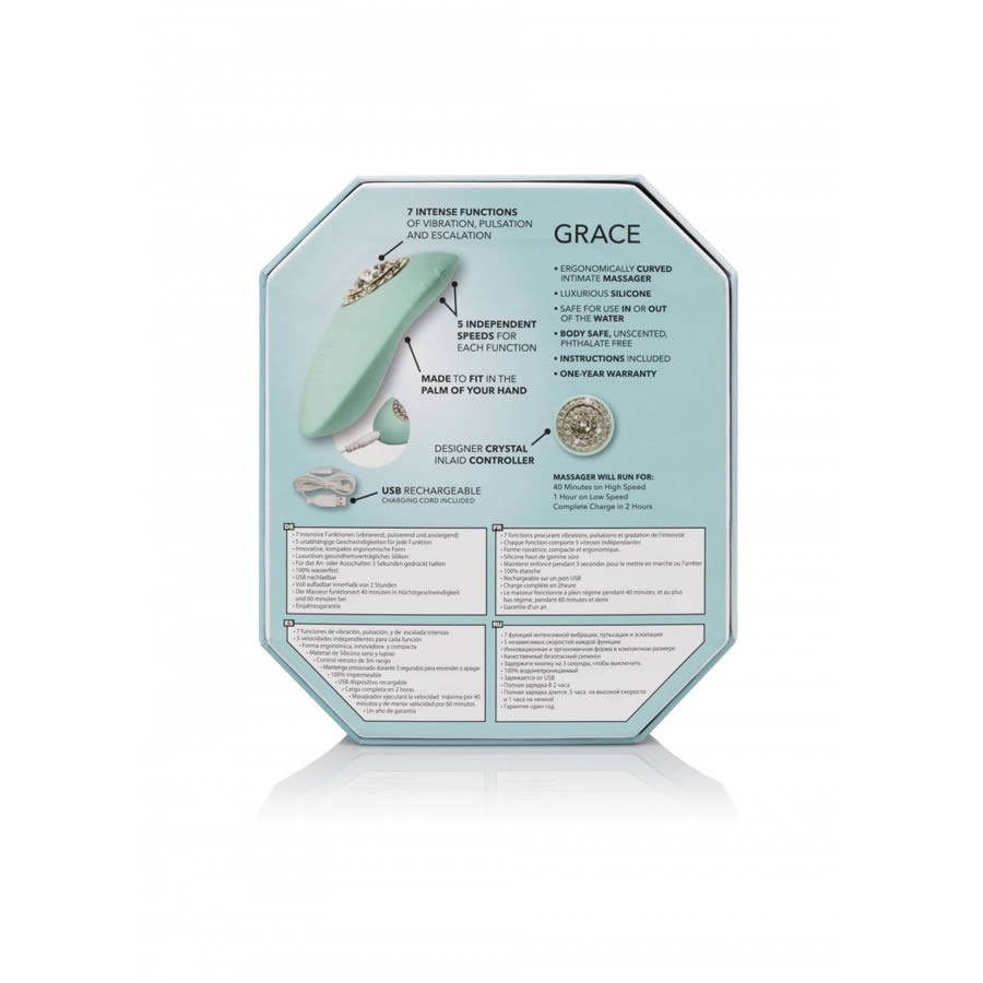 Treat yourself to the sparkling Pavé Grace, a mini massager with sparkling crystal adornments, ergonomic curved shape and sensational vibrations for a one-of-a-kind pleasure experience. Fit this mini massager perfectly in your palm and enjoy full control over the indulgent vibrations and versatile massager shape. The ultra-smooth curved shape is covered in a premium silicone with two sleek profile buttons. This silky-smooth vibrator is packed with 7 functions of vibration and 5 independent speeds for each function for stimulation made just for you. The easy-touch control buttons let you effortlessly flicker through each function of vibration, while increasing or decreasing the function intensity. Whether you’re taking a dip with a lover or indulging in a steamy solo session, look forward to up to 2 hours of waterproof vibration. Recharge pleasure and get back to playtime in only 2 hours with the provided USB cable. The hypoallergenic luxury teaser is made from Satin Finish silicone with glass crystal adornments.