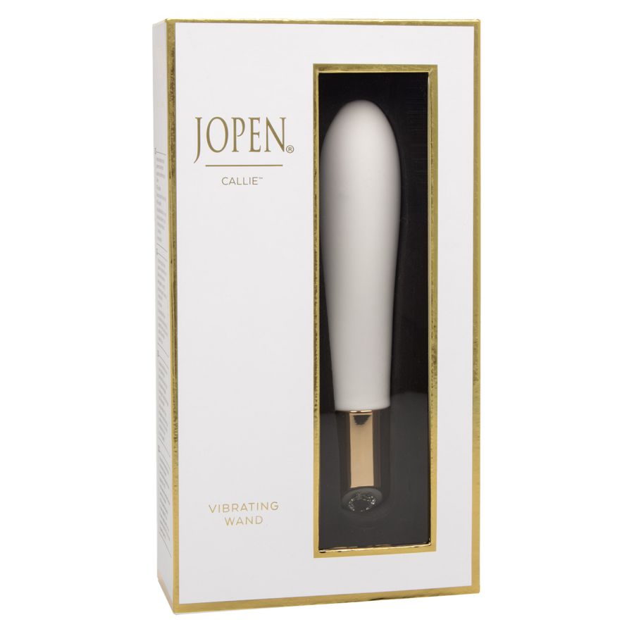 The Callie Vibrating Wand by Jopen is a sophisticated pleasure provider with high-end designer accents. The powerful massage wand has a sleek, slightly bulbous silhouette that will hit all your intimate hot spots. The product has an elegant white and gold color scheme and a luxurious gemstone push button operation. The chic Callie Vibrating Wand is USB-rechargeable (charging cord included) and made of virtually seamless silicone. It also features 7 divine functions of vibration, pulsation and escalation that will no doubt take you to seventh heaven!