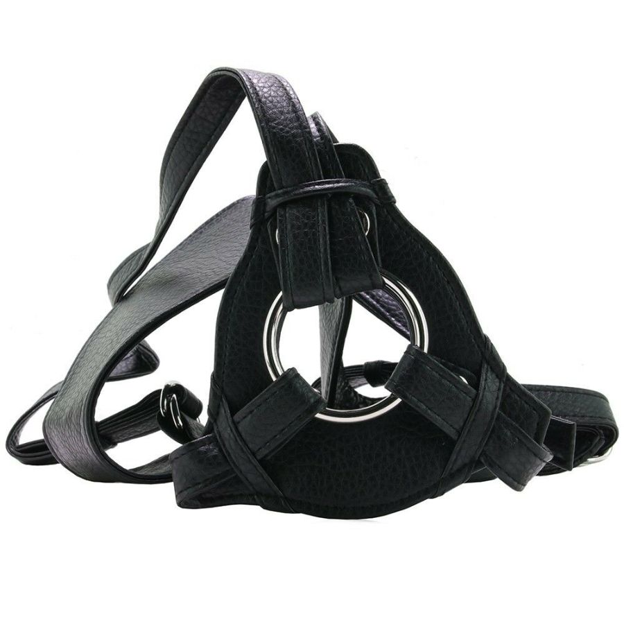 Cintura in pelle eco si adatta comodamente sui fianchi e due sottili cinghie si avvolgono attorno ad ogni coscia. Basta tirare le estremità per regolare la giusta dimensione. Al centro un anello metallico, nichel free, di 5 cm (2 pollici) di diametro .