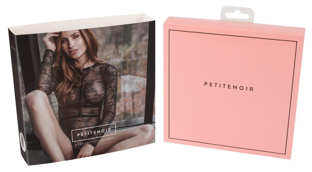 Admirable back views!The black body is made of semi-transparent floral lace and its crotch can be opened in a matter of seconds with the hook fastener. With golden details and long sleeves. In the front and back are velvet straps that can be opened and adjusted in the back. 95% polyamide. 10% elastane. Attention: Petitenoir has a separate size chart.