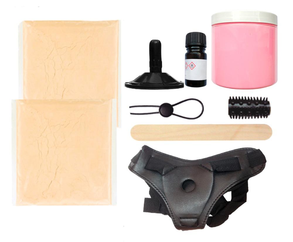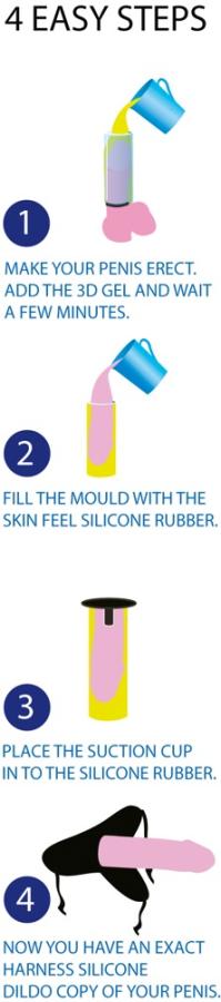 Your penis as a dildo – with a harness! This set contains everything you need to make a 1:1 replica of your penis. Silicone is poured into the mould and you will then have a dildo in your hands after only 24 hours. This dildo is definitely unique and a great gift for your partner! The dildo can be placed in the included harness because it has a base/suction cup and can therefore be used during role play sessions.The set is suitable for a penis up to 20 cm long (when erect) and up to max. Ø 4 cm. Content: a moulding tube (the set’s outer packaging), a cock ring, a sleeve, 3D gel (2 bags), a hardening agent, a wooden spatula, silicone rubber and a harness. Includes instruction manual.