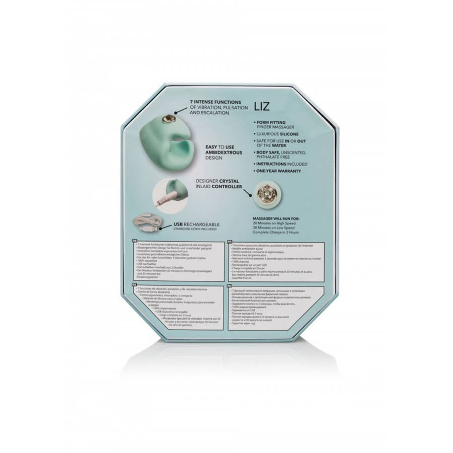 Concedetevi il lussuoso pavé Liz e lasciatevi affascinare dalla sua forma unica. Anello con 7 potenti funzioni di vibrazione. Lasciate che questo meraviglioso Mini Vibe vi abbagli con le sue dimensioni compatte, setoso silicone e scintillanti ornamenti di cristallo. Montate questo mini massaggiatore perfettamente sulla punta del dito e godete del pieno controllo sulle vibrazioni e la forma versatile del massaggiatore. La forma curva liscia è rivestita in un silicone Premium con una parte stimolante a costine. Solleticate e stuzzicate con ciascuno delle 7 pulsazioni, vibrazioni e le funzioni di aumento velocità. Mentre le basse vibrazioni girano il calore in su, ogni aumento di vibrazione e tocco del rilievo a coste vi spingerà sempre più vicino al piacere puro. Sia con il partner o da soli fino a 30 minuti di vibrazioni. Ricaricate e tornate a giocare in solo 2 ore con il cavo USB fornito. Il teaser lussusoso ipoallergenico è fatto da silicone satinato con ornamenti di cristallo di vetro