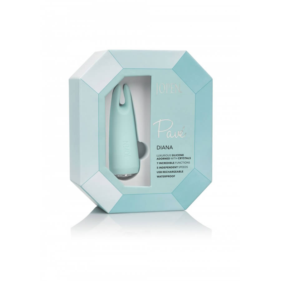 The sparkling Pavé Diana is a travel size vibrator with dazzling crystal adornments, tickling dual teasers, and 35 sensational vibration settings for a one-of-a-kind pleasure experience. Two teasing tips, an erotically contoured shape and 100% play area are perfect for teasing your favorite pleasure points. The flickering tips and discreet size want to deliver pinpoint pleasure, wherever you go. This silky-smooth vibrator is packed with 7 functions of vibration and 5 independent speeds for each function for stimulation made just for you. The easy-touch control buttons let you effortlessly flicker through each function of vibration, while increasing or decreasing the function intensity. Whether you’re taking a dip with a lover or indulging in a steamy solo session, look forward to up to 2 hours of waterproof vibration. Recharge pleasure and get back to playtime in only 2 hours with the provided USB cable. The hypoallergenic luxury teaser is made from Satin Finish silicone with glass crystal adornments.