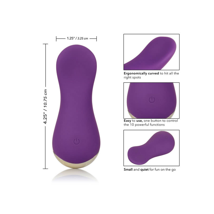 Il mini massaggiatore curvo si adatta tra le dita per consentirvi di offrire una tantalizzazione mirata e un brivido con vibrazioni flessibili. Divertiti con le 10 vibrazioni, le pulsazioni e le funzioni di escalation con il pulsante di controllo easy-touch.