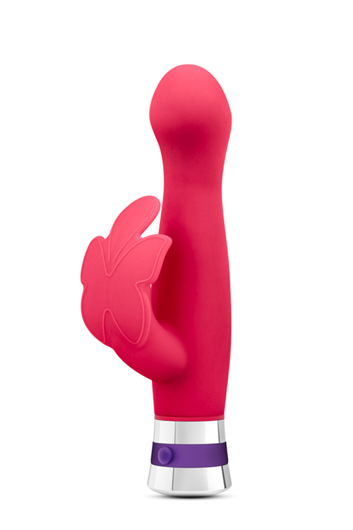 Questo vibratore ha uno stimolatore clitorideo a forma di farfalla e potenti vibrazioni.