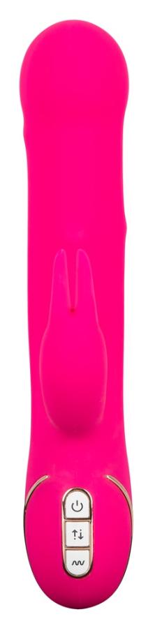Rechargeable, waterproof pink vibrator with silver-coloured parts for decoration. With a round G-spot tip, massage beads in the shaft and rabbit-shaped clit tickler with movable ears. It feels extremely realistic, thanks to the silicone. The clit tickler has 7 vibration patterns and an up-and-down movement of the beads in three speeds. Rechargeable using the included USB cable. (Charging time 2.5 hours).Complete length 23 cm, insertion depth 13 cm, Ø 3.6 to 4.1 cm. Clit tickler 7 x 2.4 cm. Material: silicone, ABS, phthalate-free according to EU Regulation REACH.