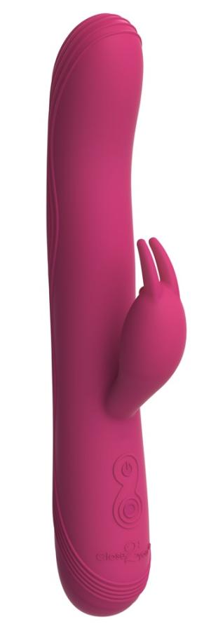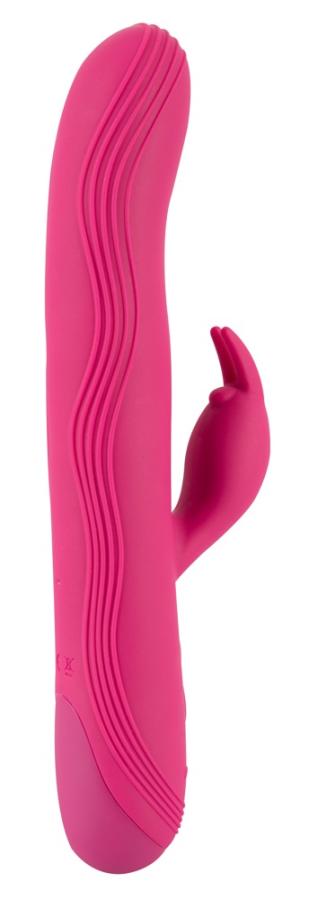Waterproof and powerful!This berry-coloured vibrator has 2 stimulating motors – one in the shaft and one in the rabbit-shaped clitoral stimulator. The new OptiGasm technology provides high and low frequencies. These frequencies create very deep vibrations that spread throughout the body. It also has stimulating grooves and can really pleasure you with its deep and extra strong vibrations that can be controlled with two buttons (On/Off button and function control button). The vibrations have 3 speeds and 4 pulsation levels. It will be almost impossible not to have an orgasm with this sophisticated, skin-friendly toy that is made out of velvety, soft-touch material!!With an LED display light and two buttons (On/Off button and function control button). It can be recharged with the included USB cable. Complete length: 22.5 cm, insertion depth: 12 cm, Ø: 3.3 cm. Material: silicone (with a PU coating), ABS. Charging time: 2 hours, battery life: 45 minutes.