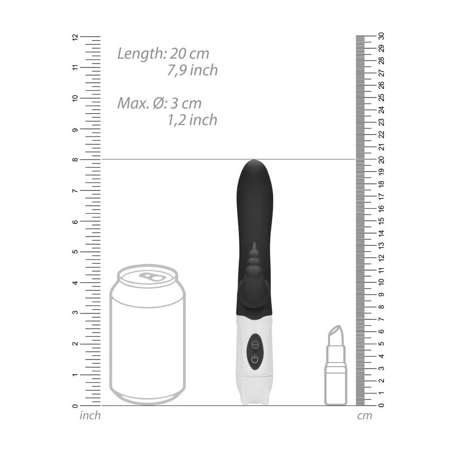 Prova il massimo del piacere con questo Vibratore e Stimolatore Clitorideo a Forma di Bombo con Motore Doppio! I due motori ultra potenti raggiungono i 15.000 RPM per darti delle sensazioni incredibili ad un livello di rumore davvero discreto di meno di 50dB. Realizzato in silicone liscio e ABS di alta qualità, questa bellezza ha uno stimolatore clitorideo ergonomicamente disegnato a forma di bombo. Dieci diverse modalità di vibrazione e di velocità sicuramente ti aiuteranno a raggiungere il grande ?O" più volte! Con una lunghezza di 20 cm (7,7") ed una circonferenza di 3 cm (1,18"), questo potente strumento ha una lunghezza inseribile di 9,5 cm (3,75"). Essendo resistente all'acqua (IPX7) questo giocattolo è perfetto da usare in acqua, basta inserire 2 batterie tripla A (non incluse) e sei pronta a divertirti.