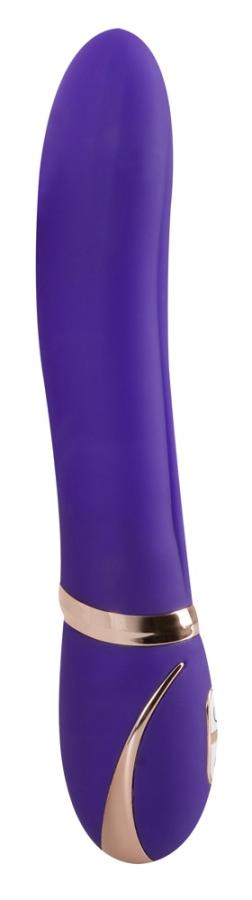 Rechargeable, waterproof purple vibrator with silver-coloured parts for decoration. It has a raised line running down the shaft. It feels extremely realistic, thanks to the double layered silicone. With seven function levels. Rechargeable using the USB cable. (Charging time 2.5 hours).22 cm long, insertion depth 14 cm, Ø 3.2 to 3.4 cm. Material: silicone, ABS, phthalate-free according to EU Regulation REACH.