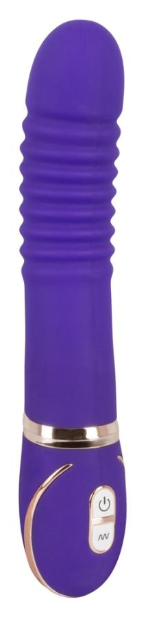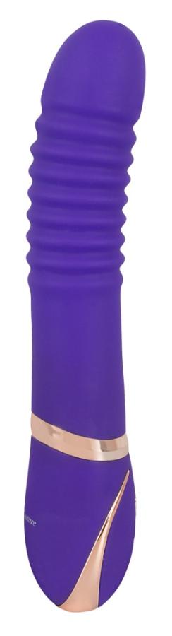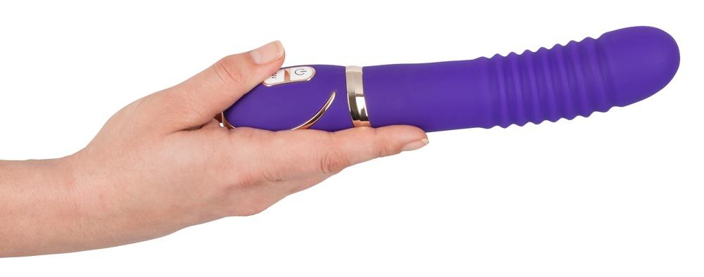 Rechargeable, waterproof purple vibrator with silver-coloured parts for decoration. It has stimulating grooves on the shaft. It feels extremely realistic, thanks to the double layered silicone. With seven function levels. Rechargeable using the USB cable. (Charging time 2.5 hours).22 cm long, insertion depth 14 cm, Ø 3.2 to 5 cm. Material: silicone, ABS, phthalate-free according to EU Regulation REACH.