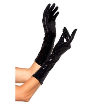 GUANTI CON PAILLETTES NERI. Guanti neri di media lunghezza rivestiti da luccicanti paillettes tono su tono.