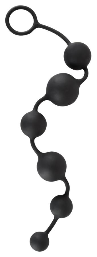 Proiettile per proiettile il desiderio puro!Catena a sfera nera con sei sfere di Ø diverso (2,3-3,9 cm). Facilmente estensibile. Con anello di ritorno. Lunghezza totale ca. 40 cm. Materiale: silicone.